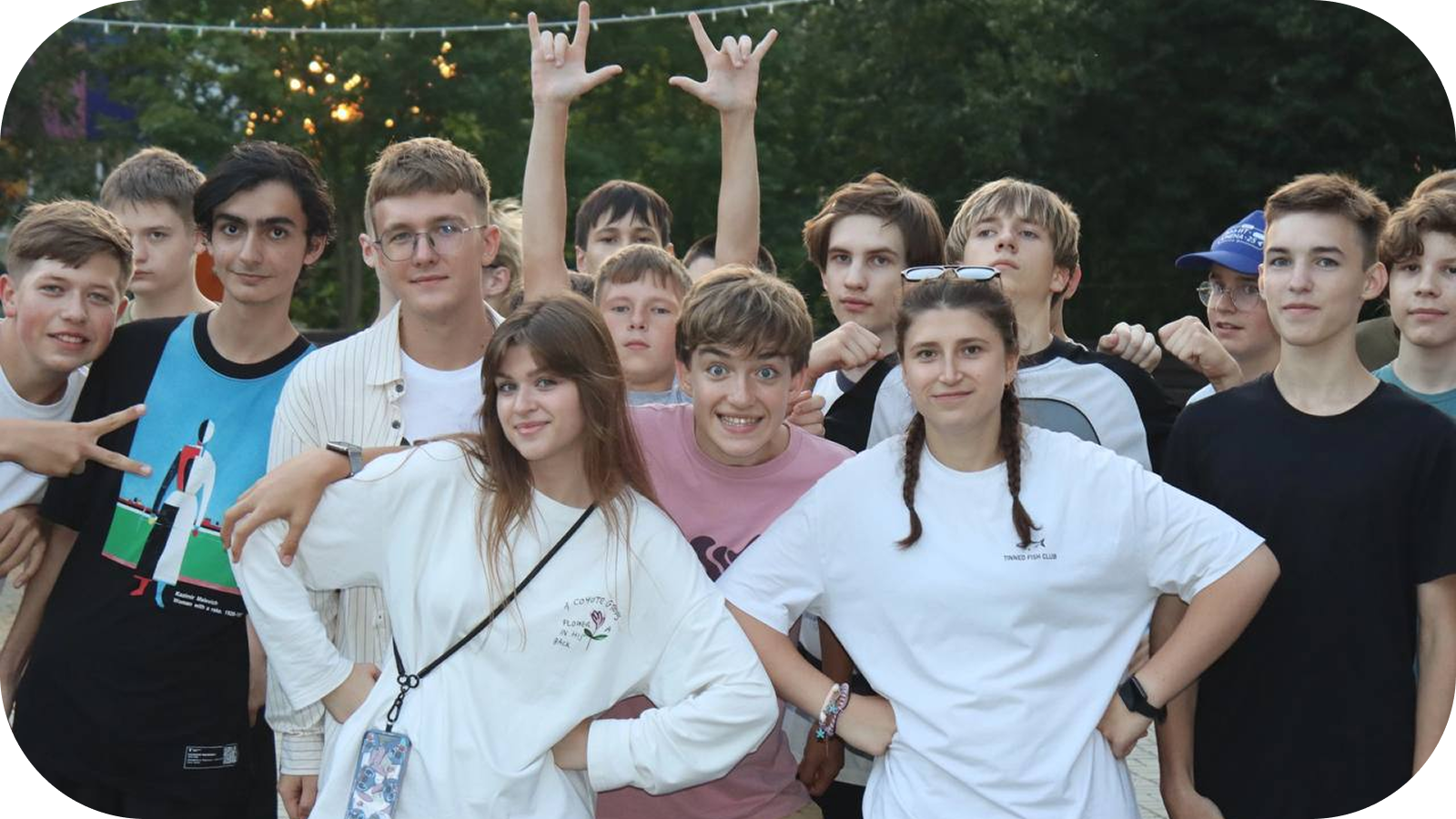 Развлечения. В программе лагеря — культурно-развлекательные и спортивные мероприятия, соответствующие блокам программы воспитания, занятия по настольному теннису, соревнования и игры. Так же проводятся дискотеки и просмотры фильмов. Работают кружки по интересам. Футбольное, волейбольное и баскетбольное поле, тренажерный комплекс расположены на уличной площадке лагеря.